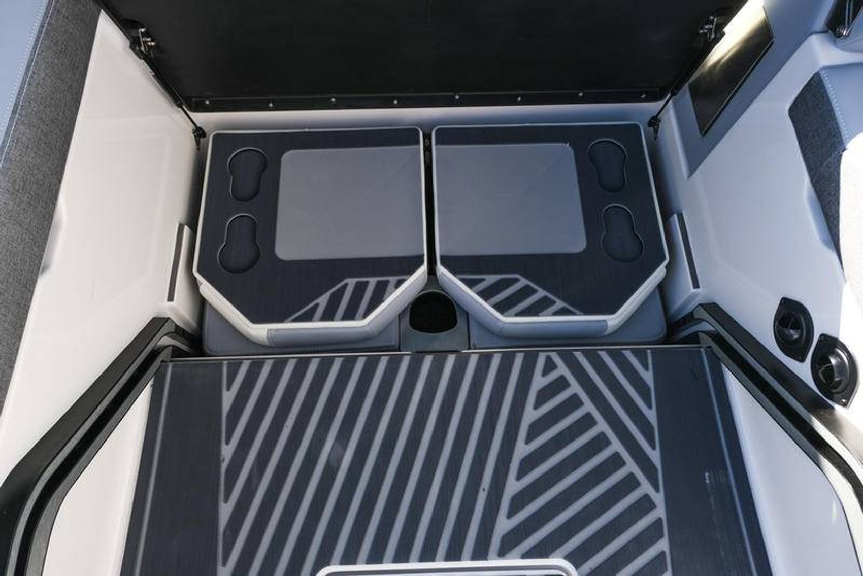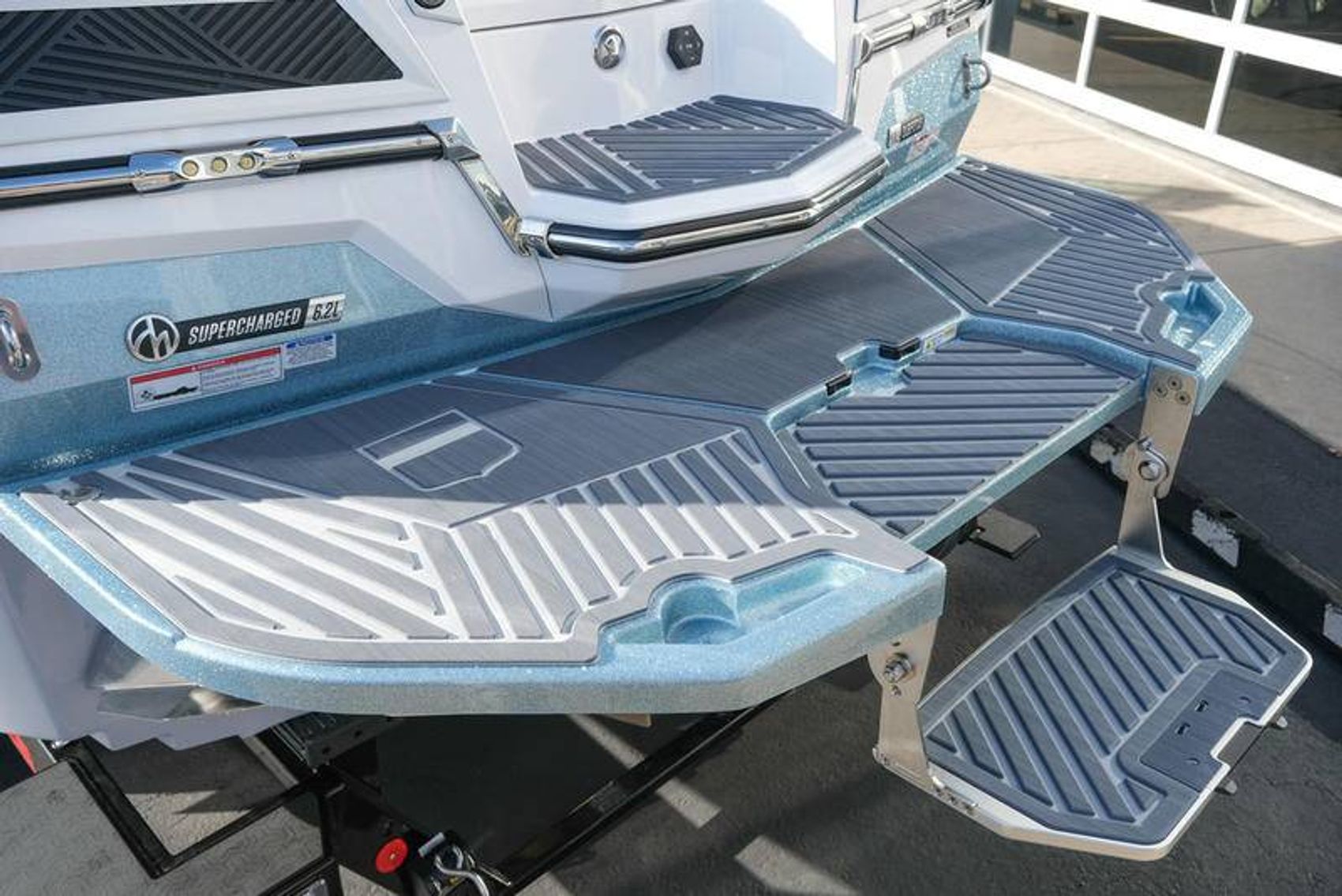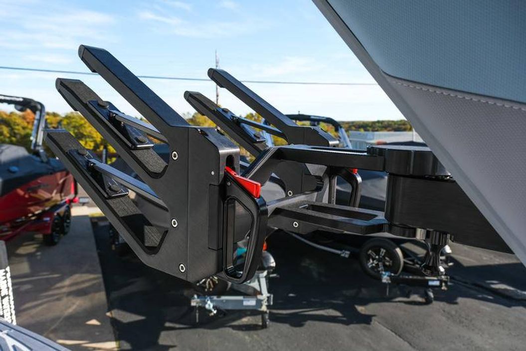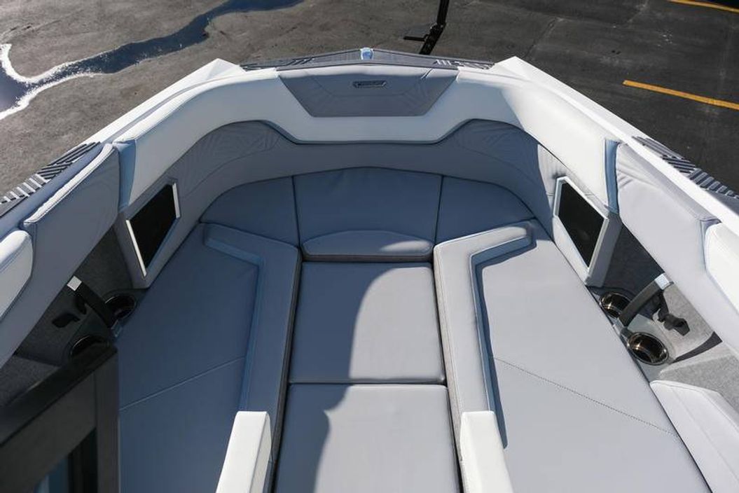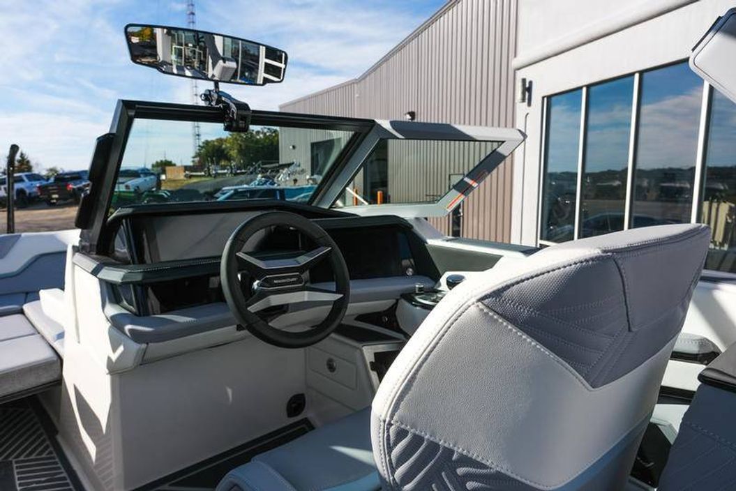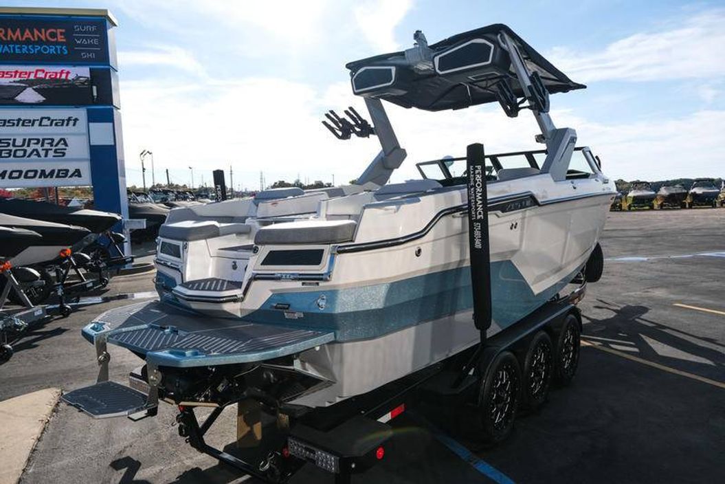 The 2026 MasterCraft XStar 25 represents the pinnacle of luxury, performance, and innovation in the world of wake boats. Finished in White with COASTAL BLUE Flake and accented by SILVER Satin badging, this build makes a bold statement both on and off the water. Inside, the CoolFeel STEALTH GREY interior with Heathered Charcoal trim and detailed stitching creates a refined, upscale atmosphere for every passenger. Powered by the Ilmor 6.2L GDI VD 2.1 Supercharged engine, this XStar S25 delivers relentless performance with precision handling, enhanced by hydraulic steering, tracking fins, and a proportional stern thruster for effortless maneuverability. SurfStar technology with FastFill ballast ensures an unrivaled surf experience with customizable waves at the touch of a button. The Z100 tower features a premium bimini in white, clamping XL board racks, and a full tower audio package with sound pods, all controlled through the dual-screen Command Center with mAX. Comfort amenities include heated helm and observer seats, a refrigerator, Murphy seat, bow filler cushion, heater, and transom lounge seating—making every outing a premium experience. Additional highlights include RGB accent lighting, underwater lighting, docking lights, stainless fender clips, panoramic XStar mirror, and aft/transom shade systems. A triple-axle trailer in Midnight Black with XD820 Black Machined wheels ensures secure transport in style. This XStar25 is the ultimate combination of performance, luxury, and design—crafted for those who demand the very best.