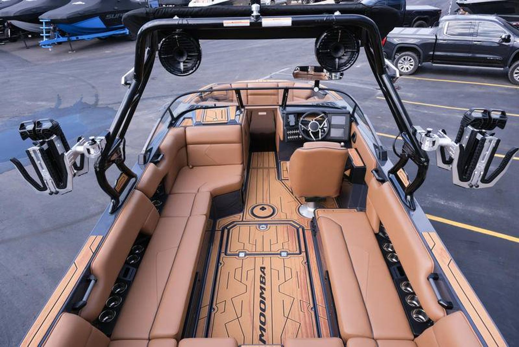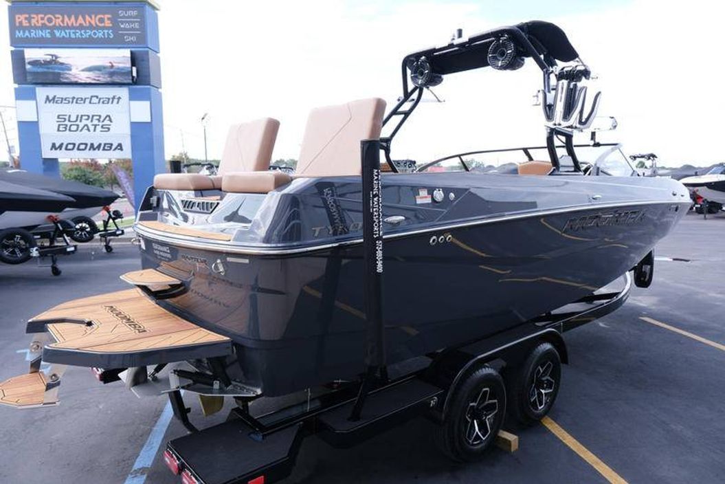 2026 Moomba Tykon Stock #622658 – Dark Graphite / Pecan Thermoskinz Interior Location: Performance Marine Watersports, Osage Beach, MO The all-new 2026 Moomba Tykon delivers surf-ready performance, premium comfort, and cutting-edge tech in a design built for families who want maximum versatility and unmistakable style. Power & Performance Powered by the 6.2L Ford Raptor 400 MPI engine paired with a 1.7 transmission, the Tykon brings smooth, reliable torque for long surf sessions and heavy ballast loads. Upgraded with the Flow 3 Surf System and G6 Ballast Upgrade, this setup creates Moomba’s most customizable and powerful wave yet — ideal for any rider level. Premium Features ZeroOff GPS Cruise Control for pinpoint accuracy every ride Dual Screen Dash System with GPS mapping and intuitive controls RGB Interior Lighting Package + Underwater Lights Heater Package for early-morning and late-season comfort Stainless Steel Rubrail (Black) and Swim Platform Flip Step Transom Mount Entry Step for easy water access Audio & Entertainment Turn the lake into your stage with the upgraded Wet Sounds Audio System, featuring: Dual 10” Rev 10 tower speakers with lights 12” Subwoofer with amplified cockpit sound Transom Audio Remote for easy control from the water Exterior & Interior Finish Main / Accent / Deck / Hull: Dark Graphite Gelcoat Interior: Pecan Thermoskinz with Dark Graphite welt and black stitching GatorStep Floor & Deck Kit (Wood Grain Pattern) Sundeck Flip-Up Backrests and Premium Driver Seat Tower & Canvas A3 Tower (Black) with Premium Bimini w/ Surf Storage Triton 2.0 Vertical Board Racks + Swivel Mechanism Full Boat Cover and Speaker Covers included Trailer Comes on a Boatmate Tandem-Axle Trailer, color-matched and built for long-haul durability. Performance Marine Watersports 5755 Osage Beach Parkway | Osage Beach, MO 65065 ?? 573-693-9400 ?? performanceloz.com