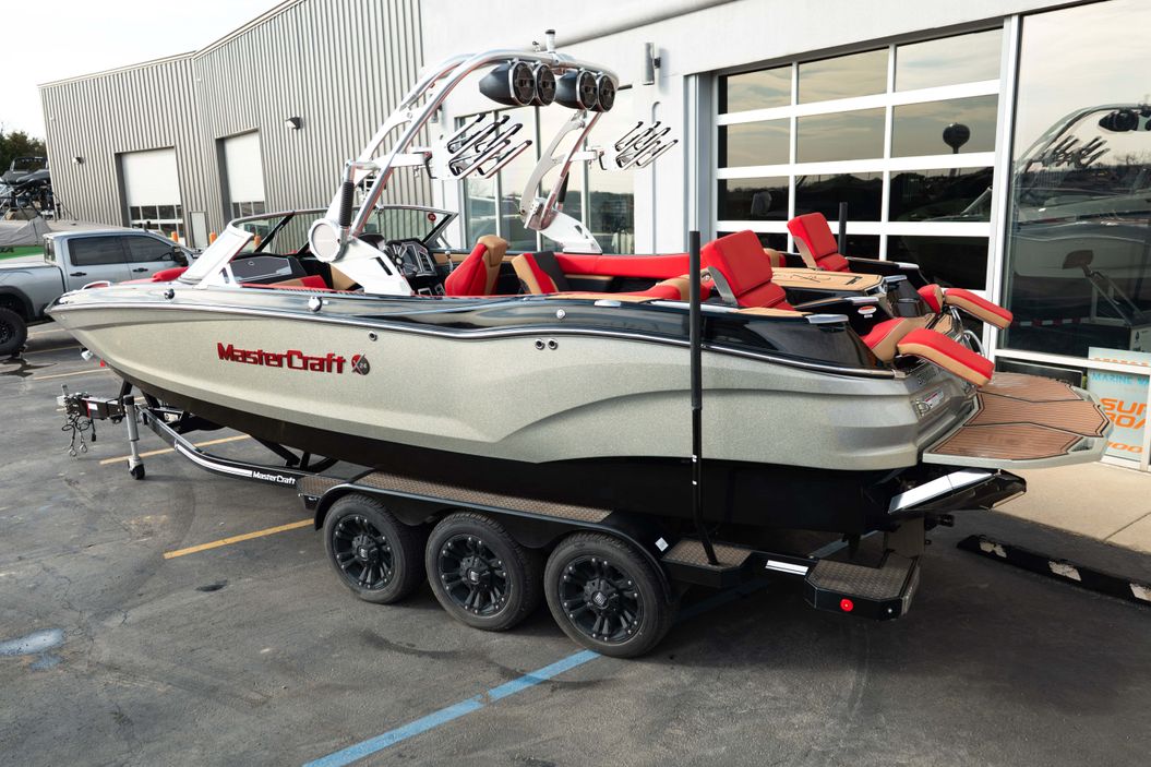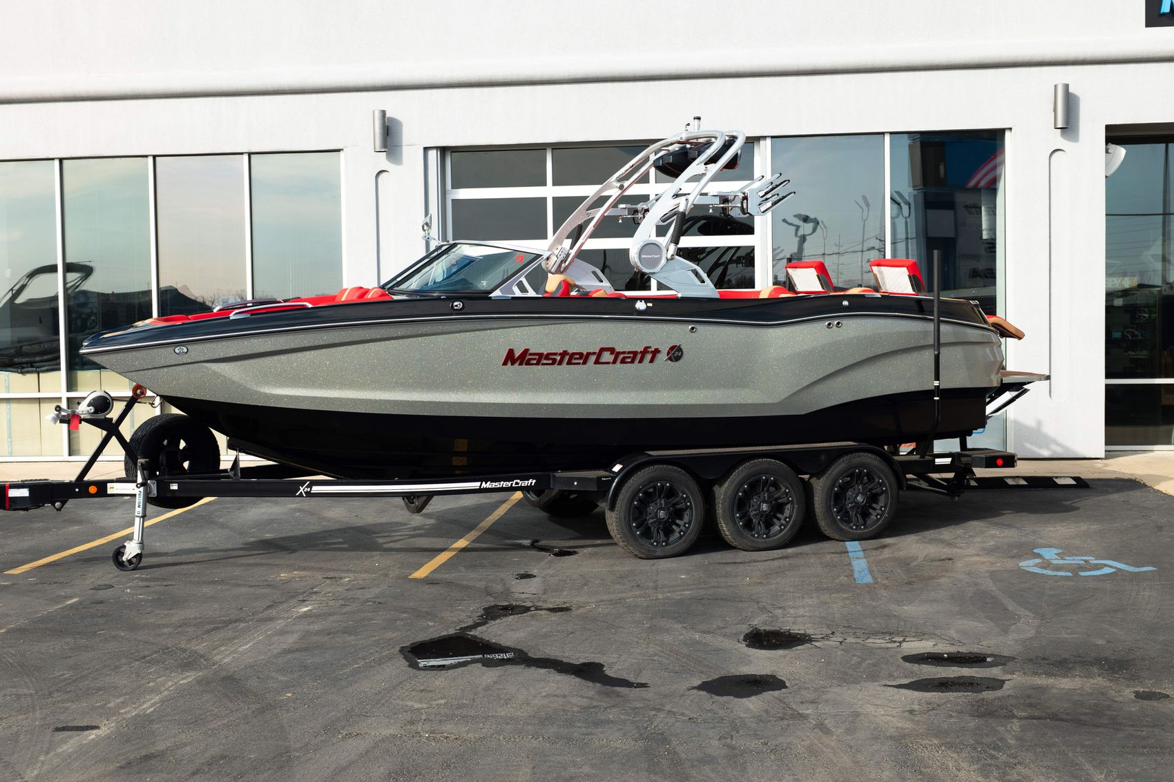 This one-owner 2021 MasterCraft X24 has just 100 hours and is loaded with the right upgrades to deliver an incredible day on the water. Finished in a sharp Midnite Black and Silver Flake color combination with a red, black, and beach tan CoolFeel interior, this X24 has the bold look and premium feel to match its flagship status. At 24’2” with room for up to 18 people, it offers a huge interior, deep storage, and the comfort to entertain all day.