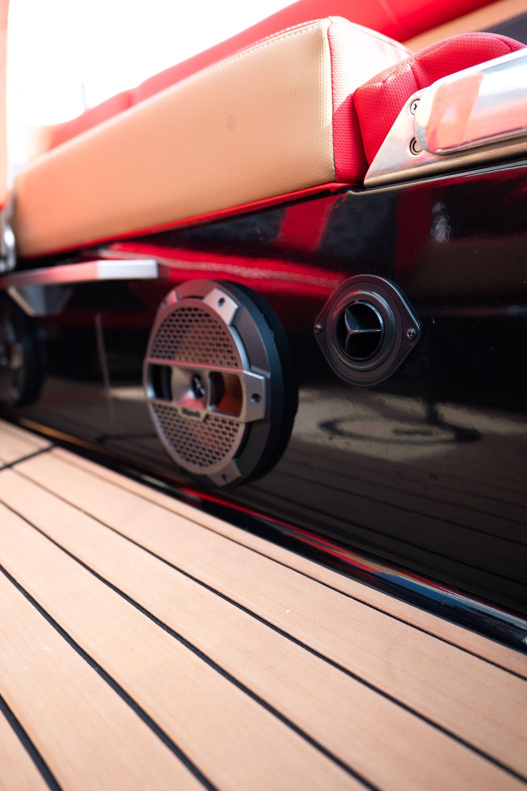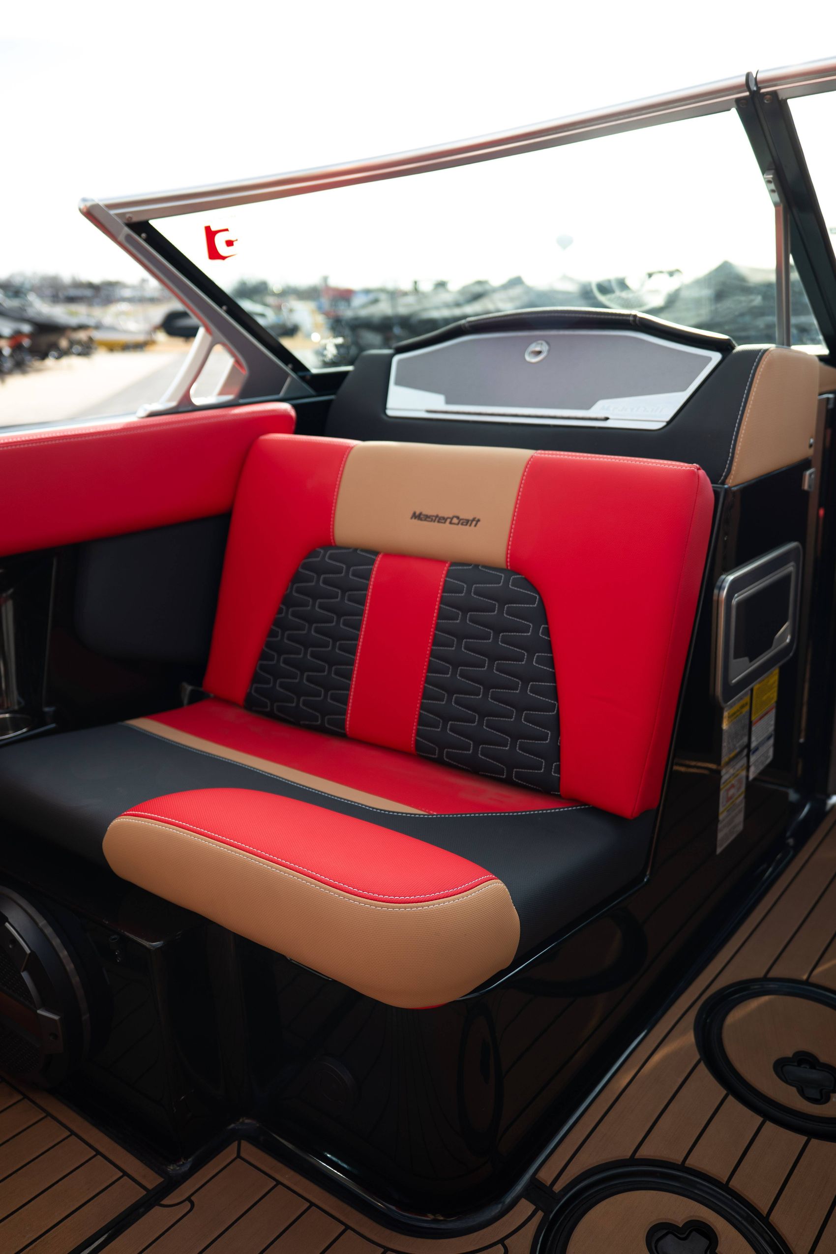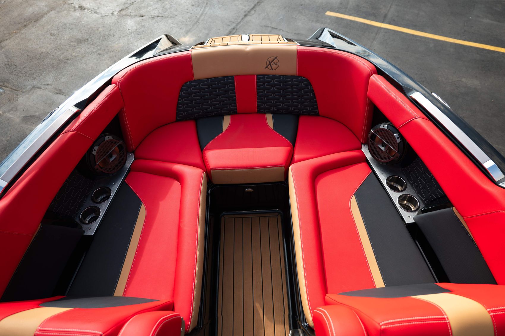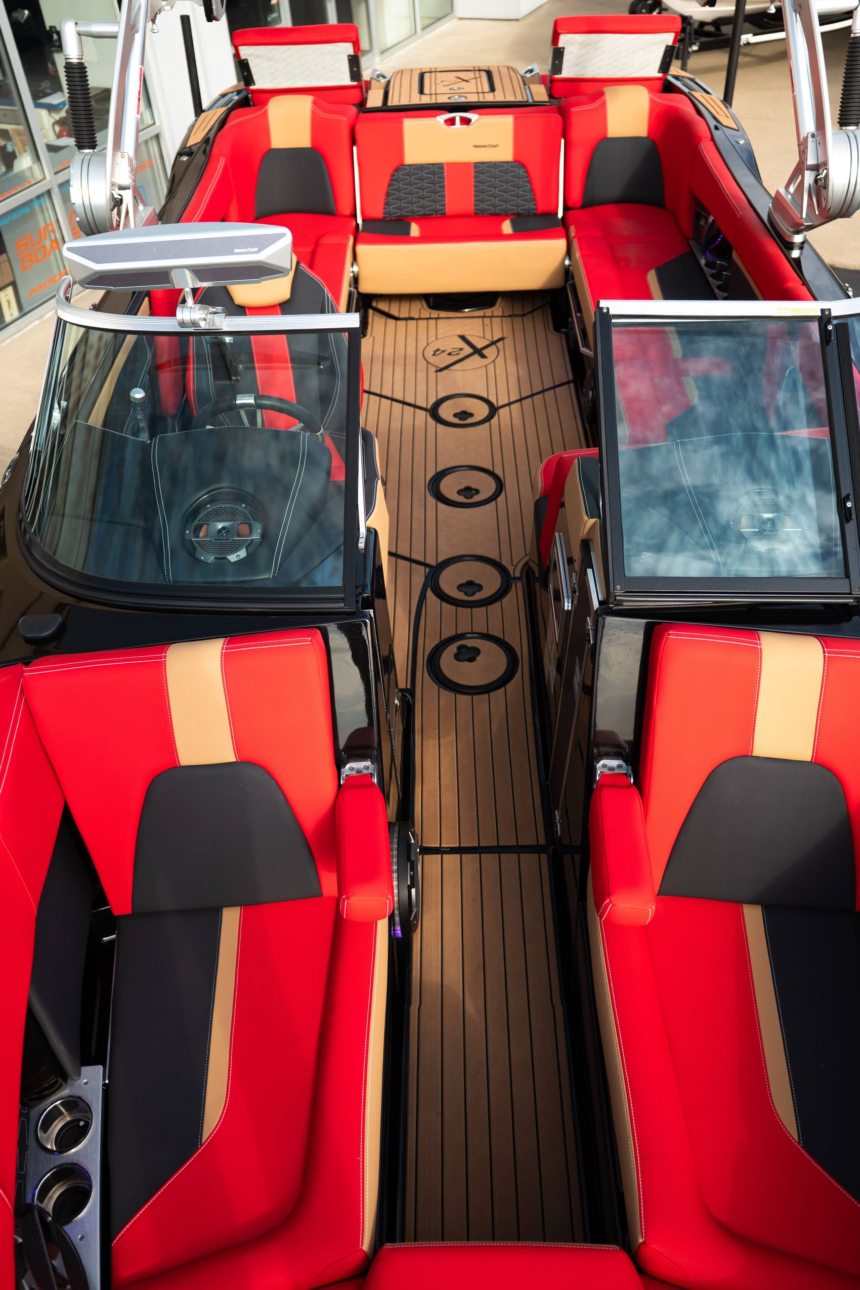 Powered by the Ilmor 6.2L GDI engine, this X24 is equipped with MasterCraft’s Gen 2 Surf System with S2S switching, FastFill ballast system, Dockstar Handling System, ZFT4 tower, Premium Plus dual screen package, stereo observer display, heater, transom lounge seating with footrests, and upgraded tower audio with speaker light rings. The advanced audio package, RGB accent lighting, panoramic mirror, tan SeaDek flooring, and convertible rear seating make this boat an outstanding setup for wakeboarding, surfing, cruising, and relaxing at the cove.