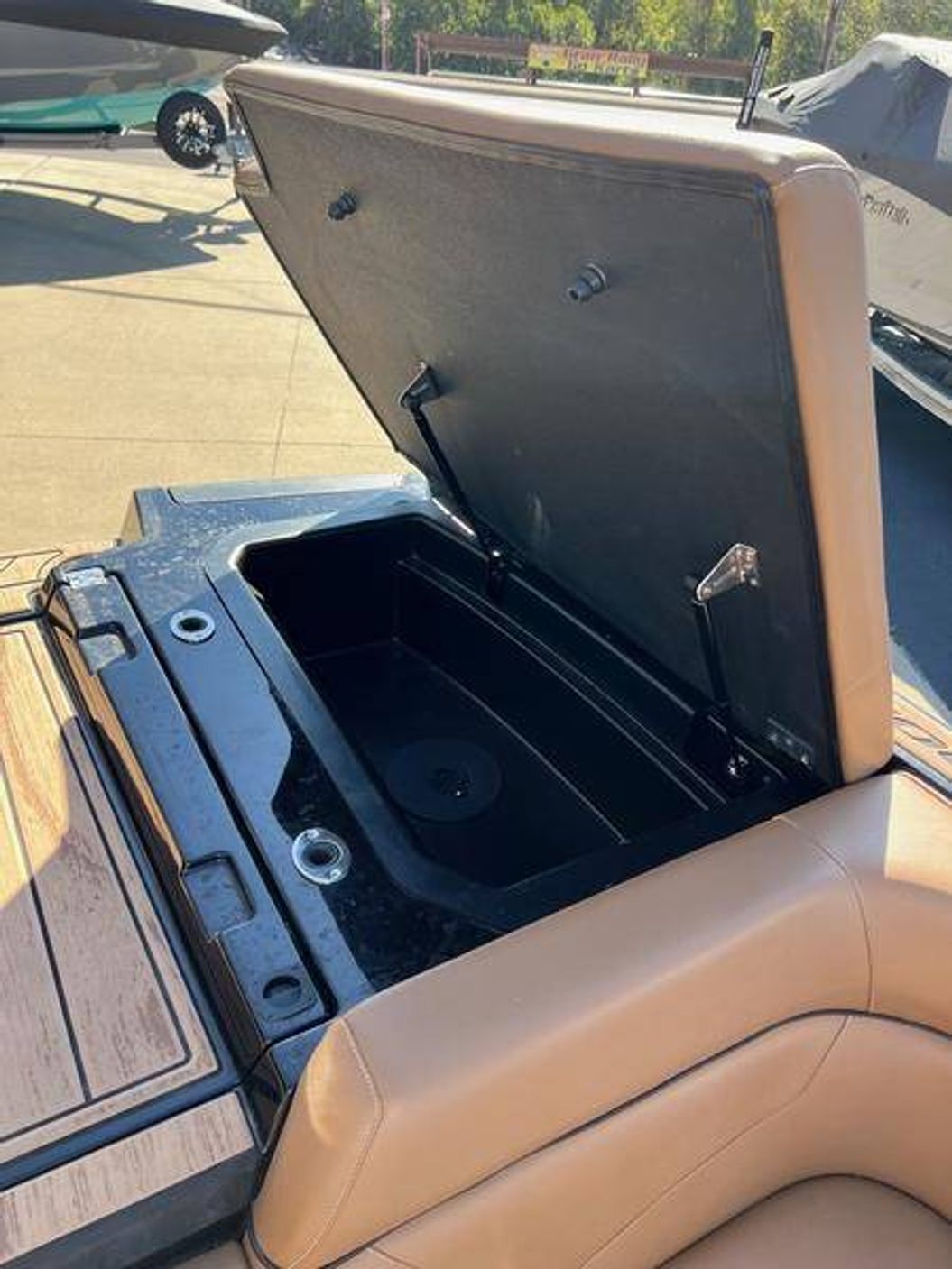 • The in floor trash can is great for keeping your boat clean while opening up tons of storage throughout the boat. One of the fan favorites is the trash receptacle and shoe storage area.